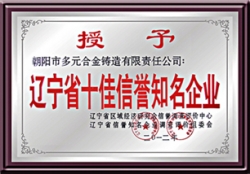公司于2001年通過IS9001-2000質量管理體系認證,生產的多元牌高錳鋼鑄件于2005年榮獲"遼寧省名牌產品"稱號。